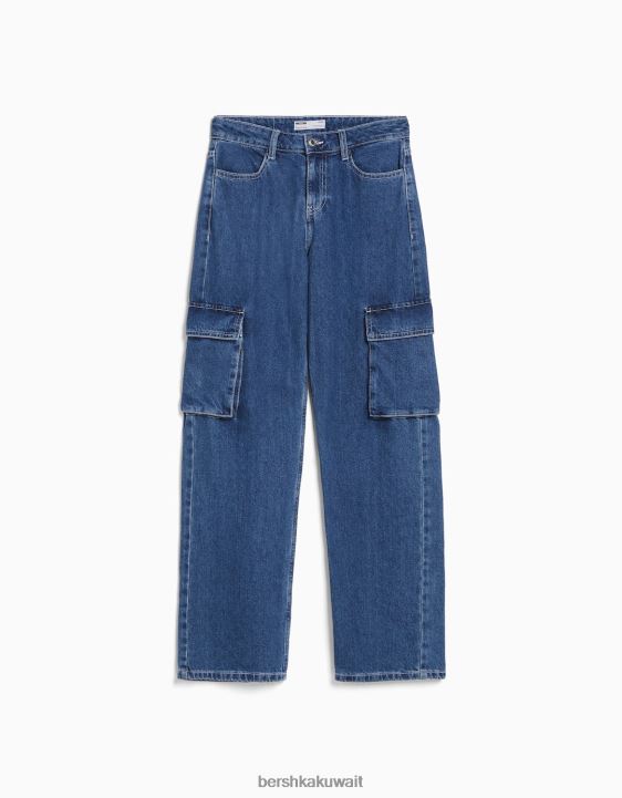Bershka نحيف بنطلون جينز بقصة مستقيمة أزرق 804X1384 ملابس
