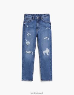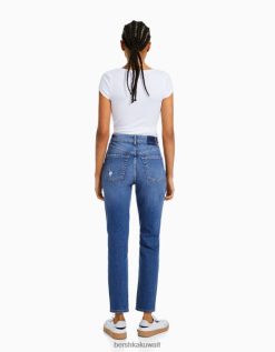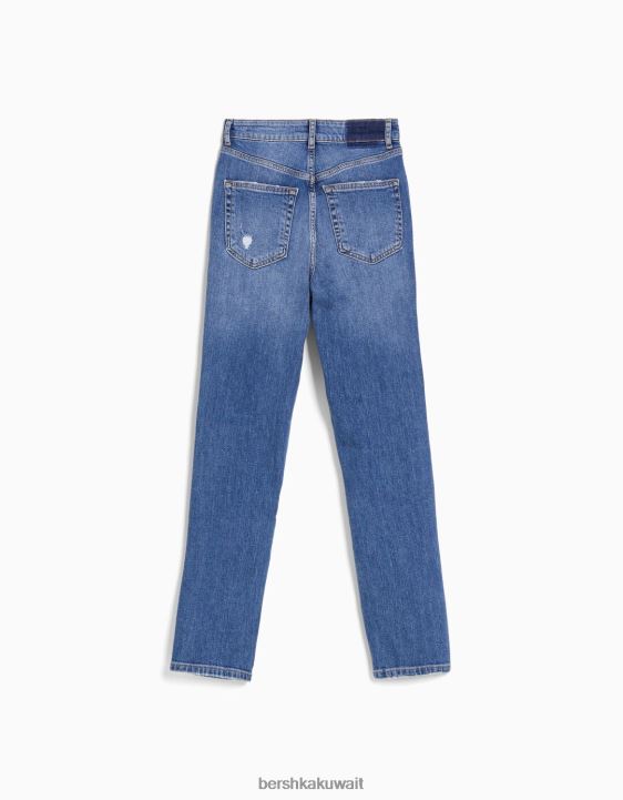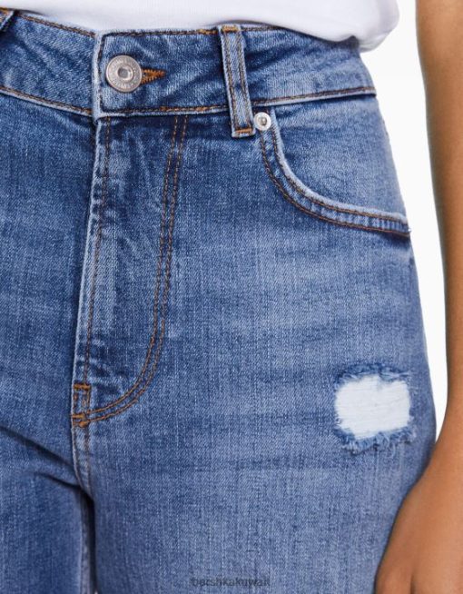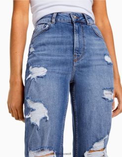 Bershka نحيف بنطلون جينز ممزق ملائم للأم أزرق 804X1593 ملابس