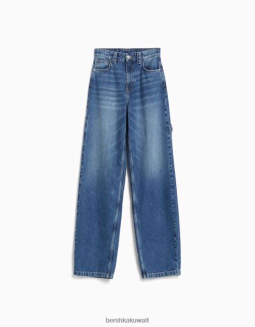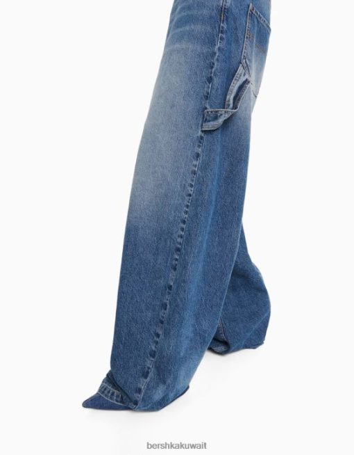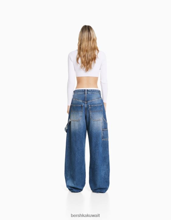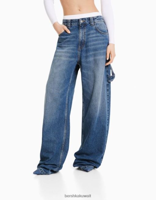 Bershka نحيف بنطلون جينز واسع بأرجل بالون مع تفاصيل أزرق فاتح 804X1586 ملابس