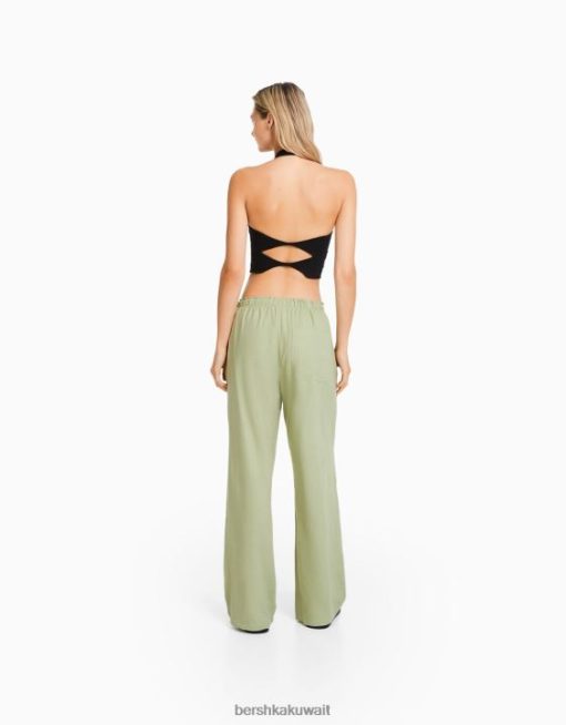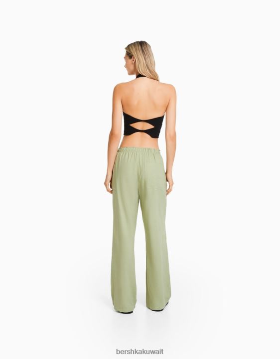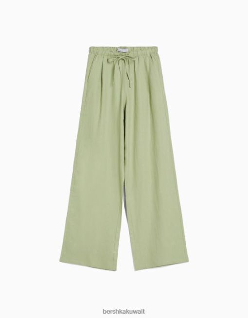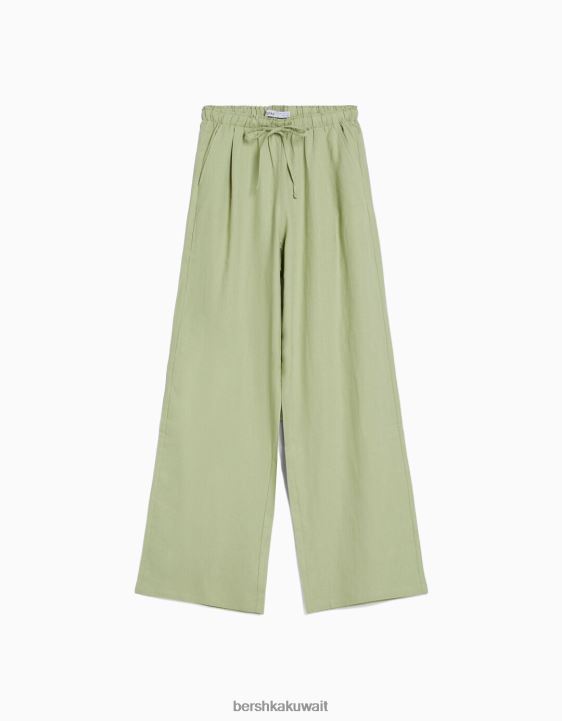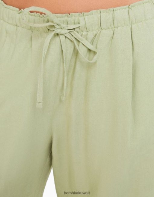 Bershka نحيف بنطلون من مزيج الكتان واسع الساق بخصر متجمع أخضر 804X1457 ملابس