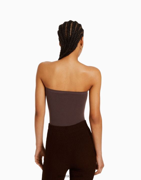 Bershka نحيف بودي سوت بدون أكتاف بني 804X868 ملابس