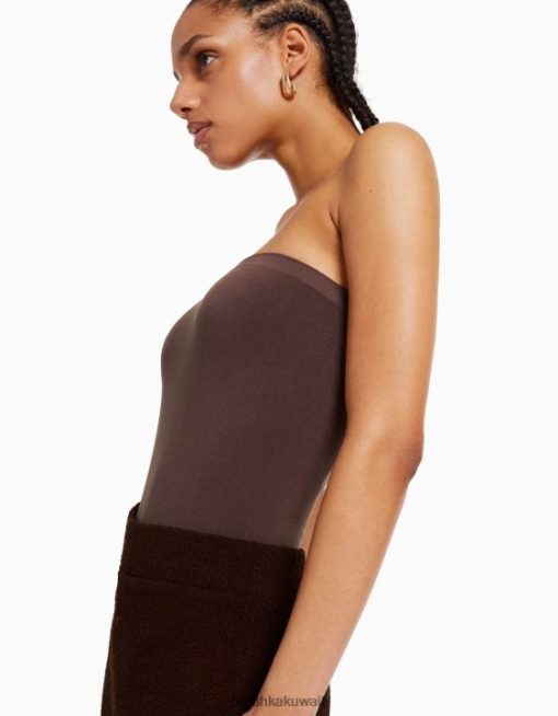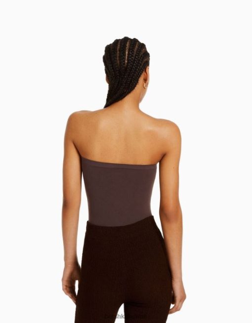 Bershka نحيف بودي سوت بدون أكتاف بني 804X870 ملابس