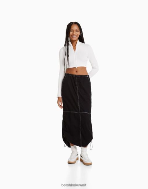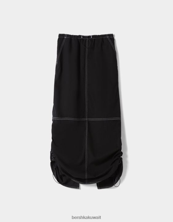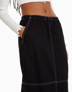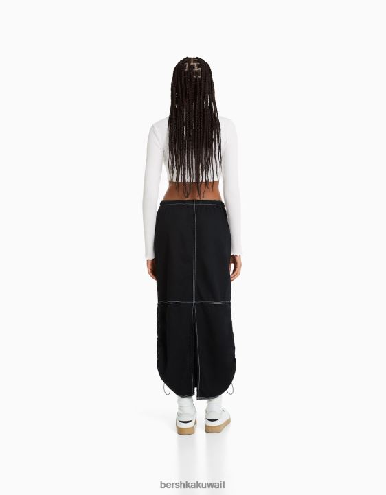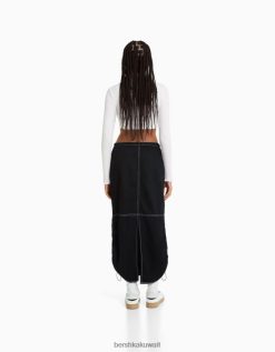 Bershka نحيف تنورة جينز ميدي باراشوت أسود 804X1379 ملابس