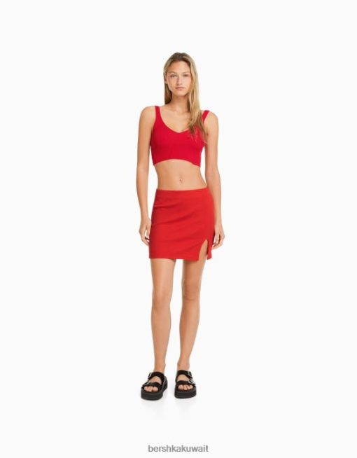 Bershka نحيف تنورة صغيرة مضلعة أحمر 804X1660 ملابس