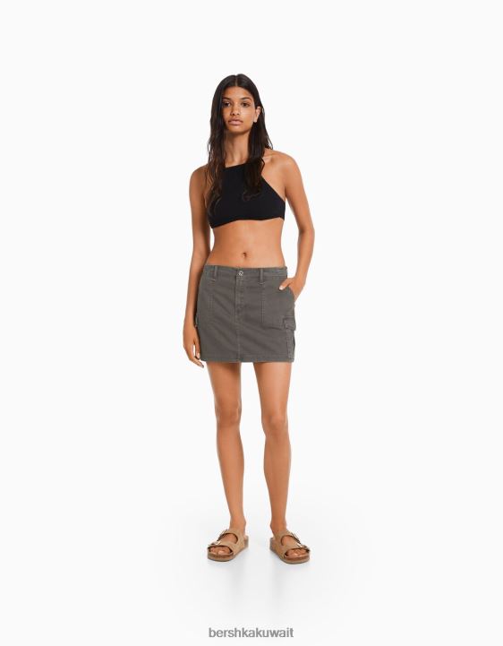 Bershka نحيف تنورة قصيرة من القطن للشحن الرمادي الداكن 804X1369 ملابس
