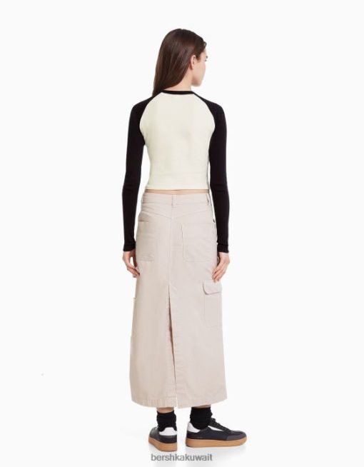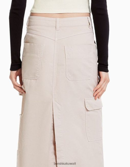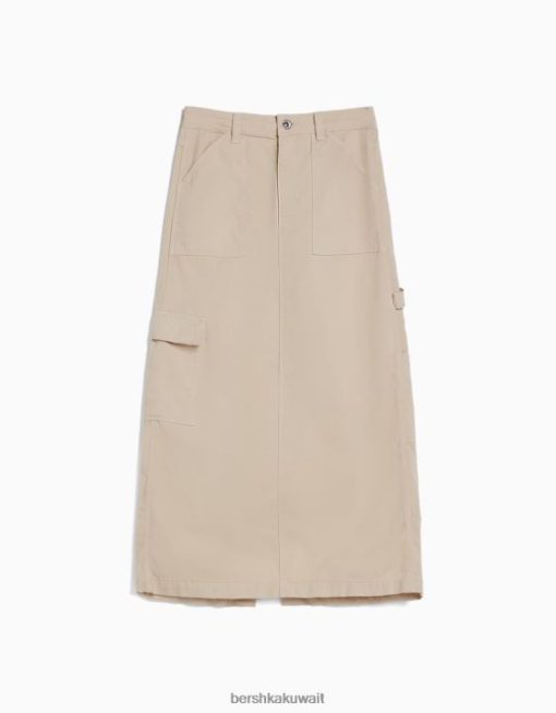 Bershka نحيف تنورة قطن ماكسي نجار رمل 804X4064 ملابس