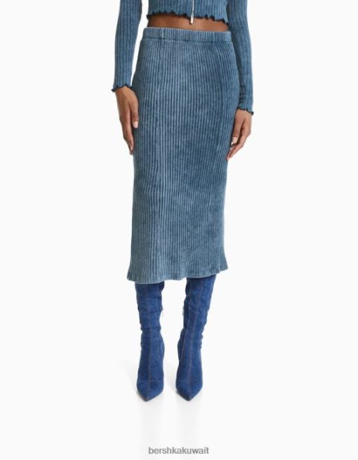 Bershka نحيف تنورة ميدي باهتة أزرق فاتح 804X1626 ملابس