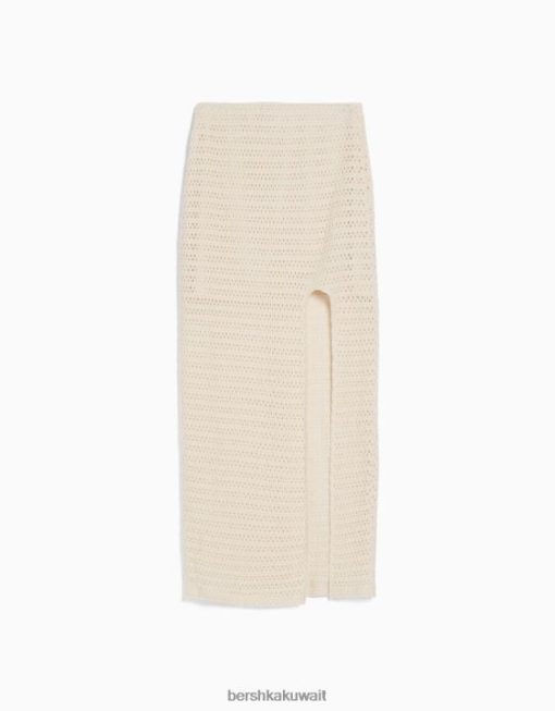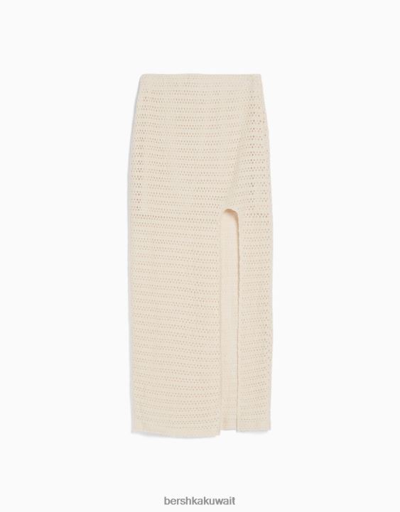 Bershka نحيف تنورة ميدي كروشيه ريفي اللون البيج 804X1928 ملابس