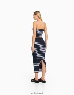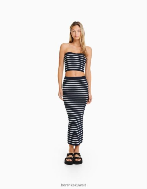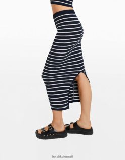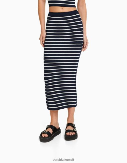 Bershka نحيف تنورة ميدي مخططة أزرق 804X984 ملابس