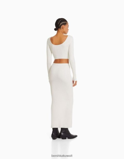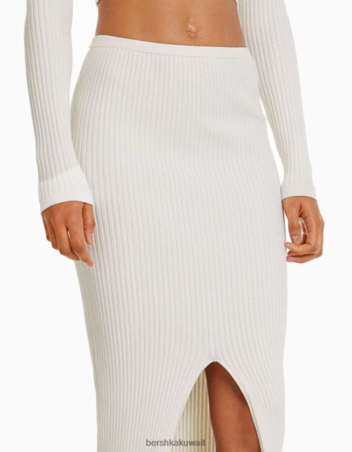 Bershka نحيف تنورة ميدي مضلعة كريم 804X969 ملابس
