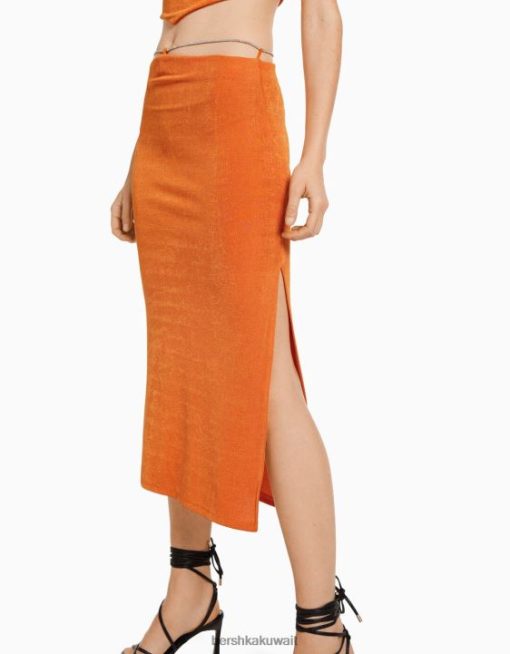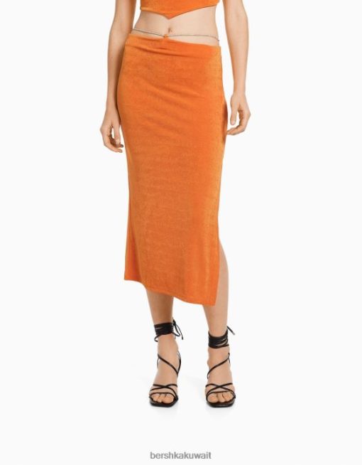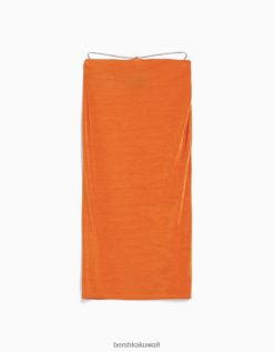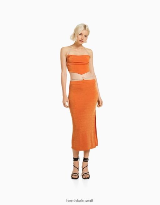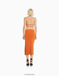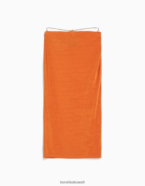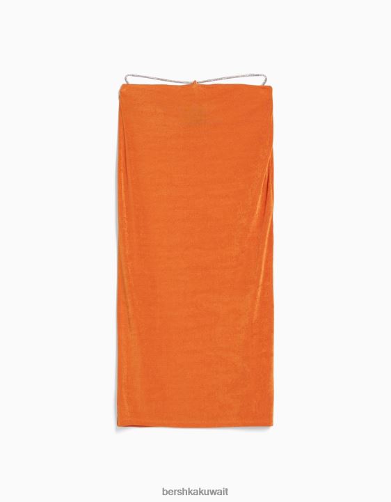 Bershka نحيف تنورة ميدي مع ربطات عنق مرصعة بحجر الراين المرجان 804X1637 ملابس