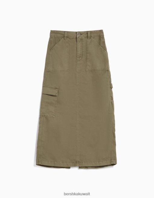 Bershka نحيف تنورة ميدي نجار قطن الكاكي 804X4063 ملابس