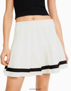 Bershka نحيف تنورة ميني بكسرات مربعة مع شريط أبيض 804X1670 ملابس