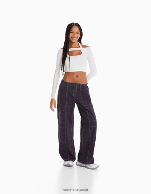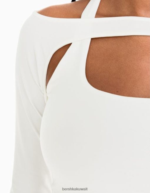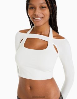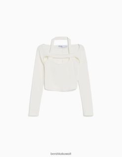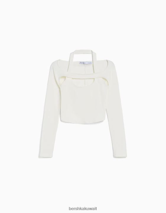 Bershka نحيف تيشيرت بأكمام طويلة مع تفاصيل ياقة أبيض 804X538 ملابس