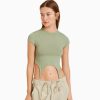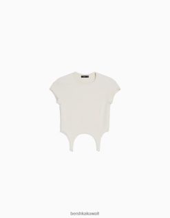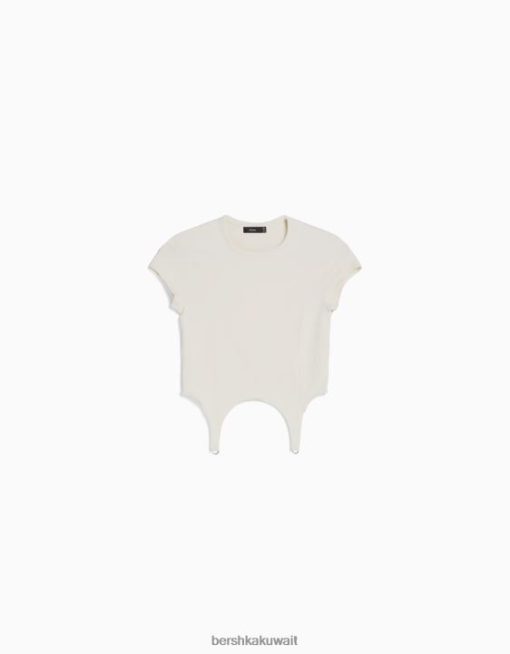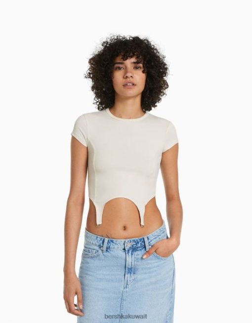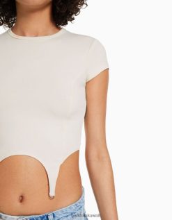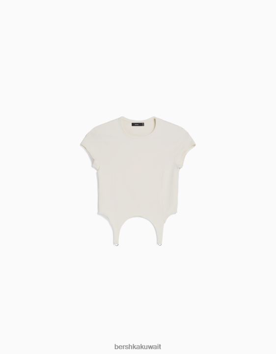 Bershka نحيف تيشيرت بأكمام قصيرة مع تفاصيل كريم 804X509 ملابس