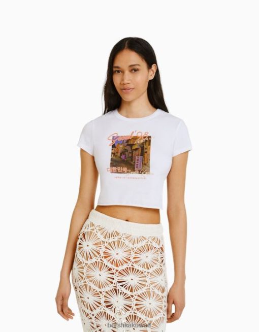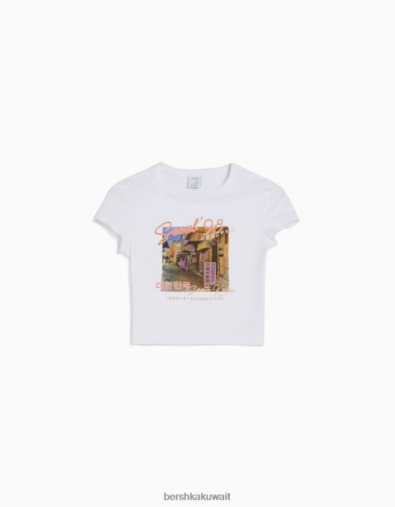Bershka نحيف تيشيرت بأكمام قصيرة مع طبعة آخر 804X365 ملابس