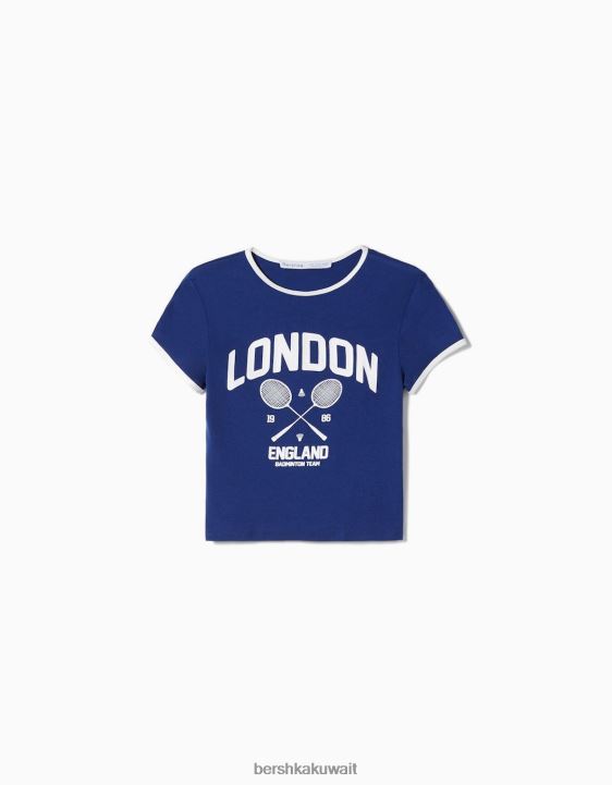 Bershka نحيف تيشيرت بأكمام قصيرة مع طبعة القوات البحرية 804X581 ملابس