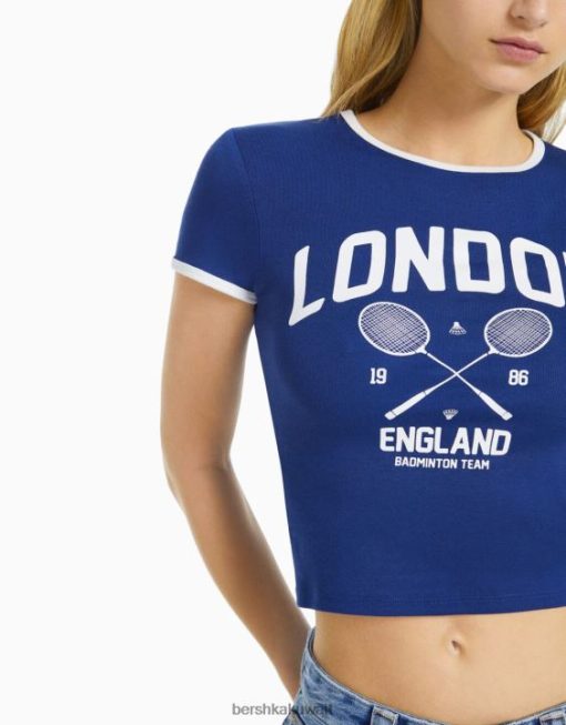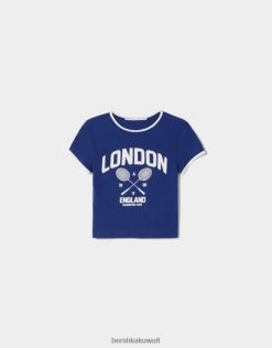 Bershka نحيف تيشيرت بأكمام قصيرة مع طبعة القوات البحرية 804X633 ملابس