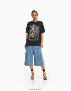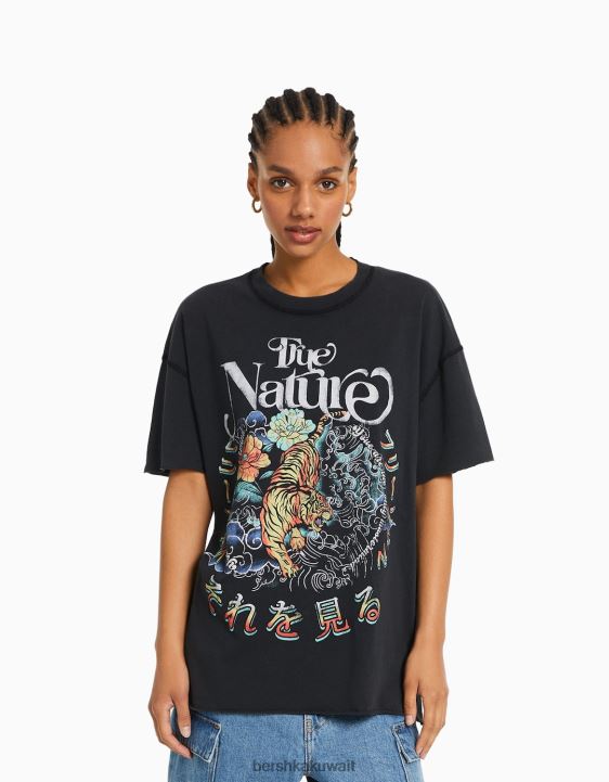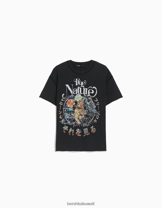 Bershka نحيف تيشيرت بأكمام قصيرة مع طبعة رمادي 804X361 ملابس