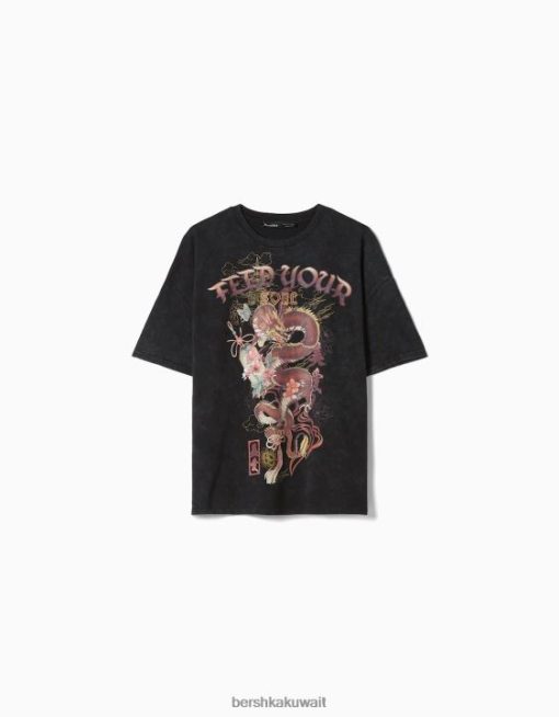 Bershka نحيف تيشيرت بأكمام قصيرة مع طبعة رمادي 804X559 ملابس