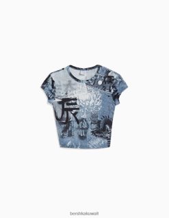 Bershka نحيف تيشيرت بأكمام قصيرة مع طبعة كريم 804X599 ملابس