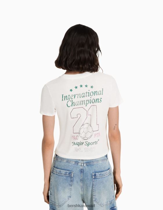 Bershka نحيف تيشيرت بأكمام قصيرة مع طبعة من البيض 804X493 ملابس