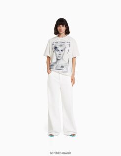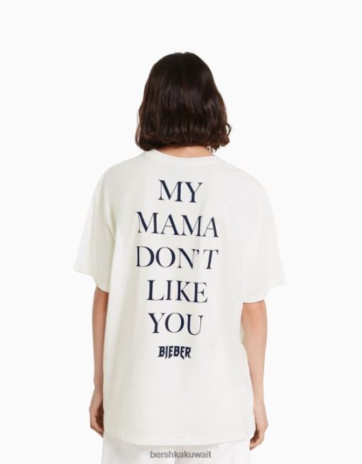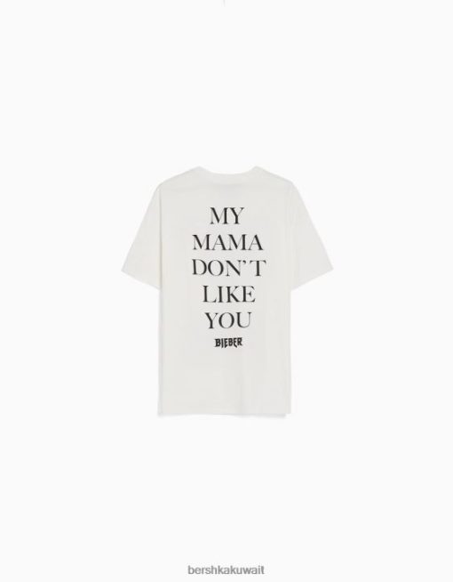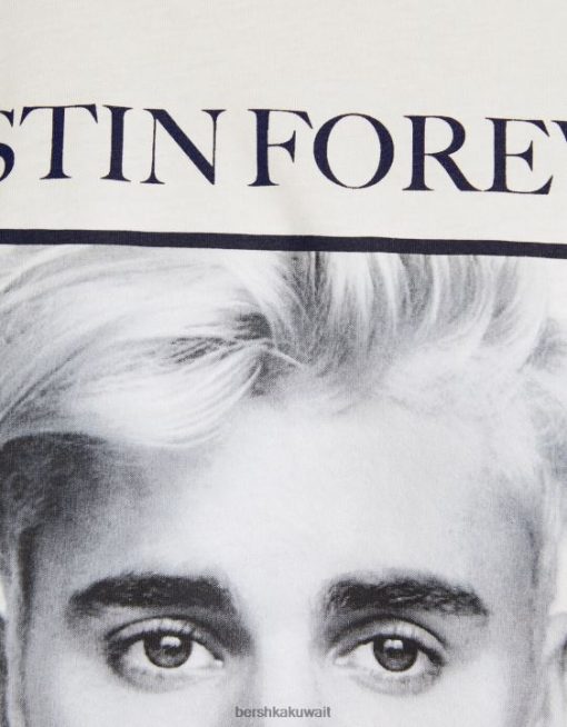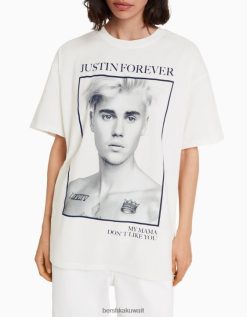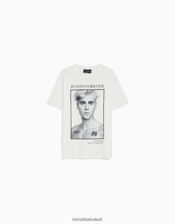 Bershka نحيف تيشيرت جاستن بيبر بأكمام قصيرة من البيض 804X325 ملابس