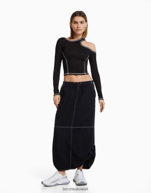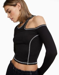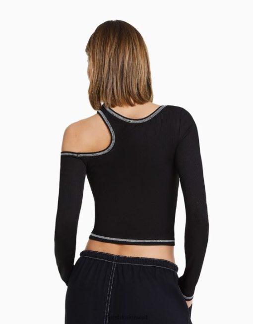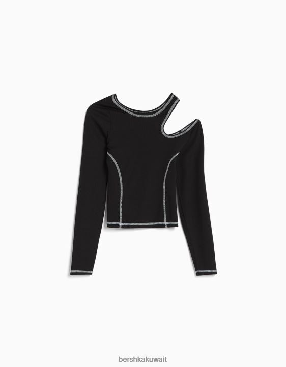 Bershka نحيف تي شيرت بأكمام طويلة أسود 804X373 ملابس