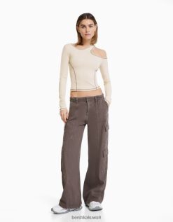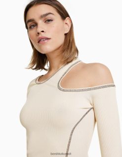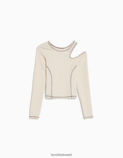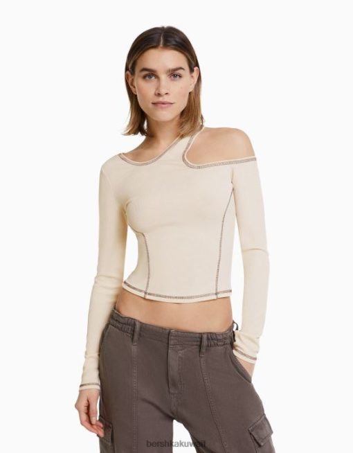Bershka نحيف تي شيرت بأكمام طويلة كريم 804X374 ملابس