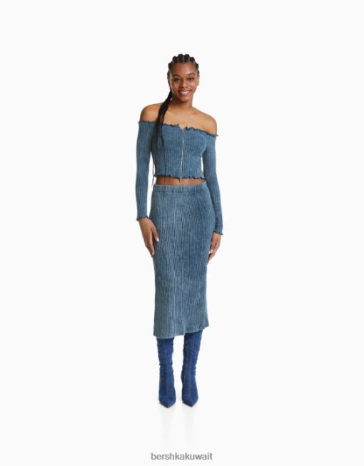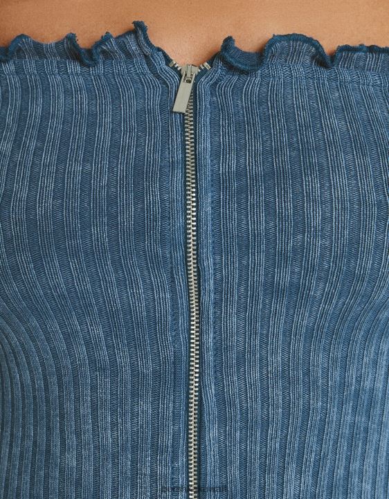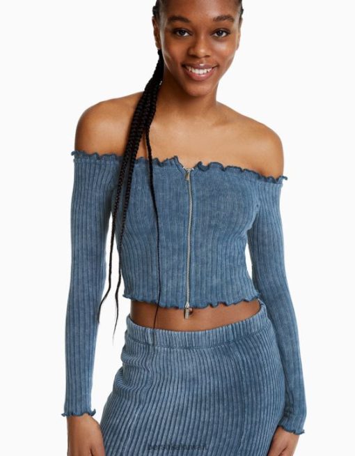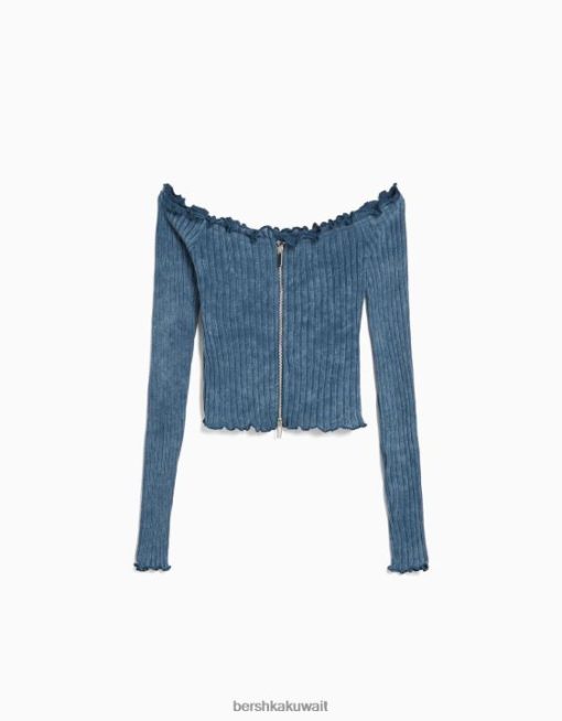 Bershka نحيف تي شيرت بأكمام طويلة مع سحاب أزرق فاتح 804X401 ملابس