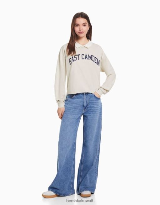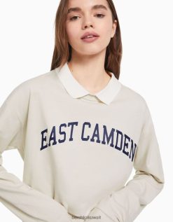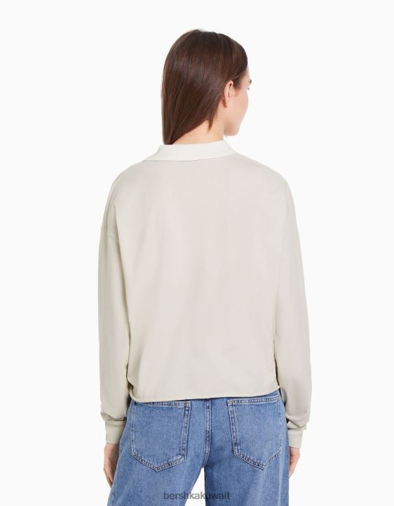 Bershka نحيف تي شيرت بأكمام طويلة وياقة بولو مطبوعة حجر 804X620 ملابس