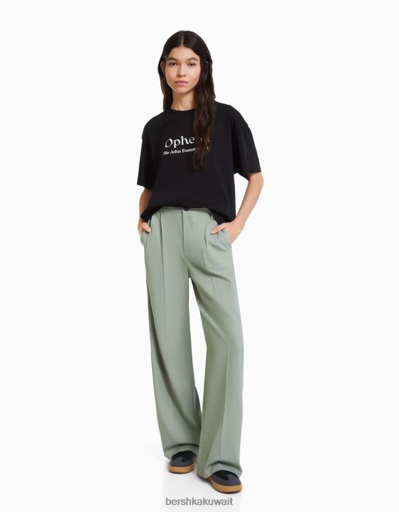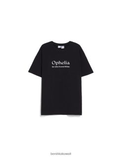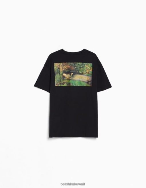 Bershka نحيف تي شيرت بأكمام قصيرة بطبعة سلسلة فنية أسود 804X446 ملابس