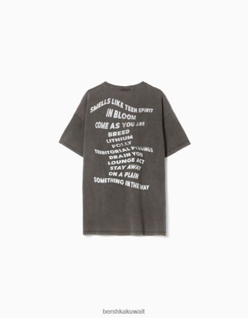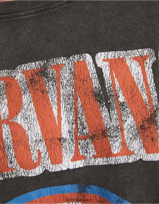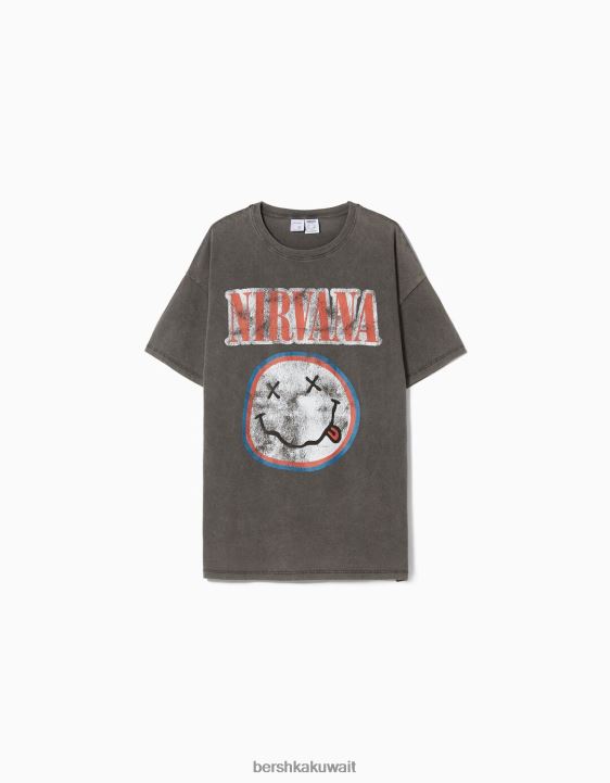 Bershka نحيف تي شيرت بأكمام قصيرة وطبعة نيرفانا رمادي 804X556 ملابس