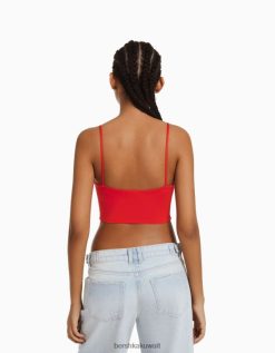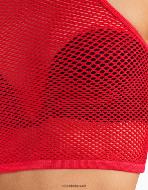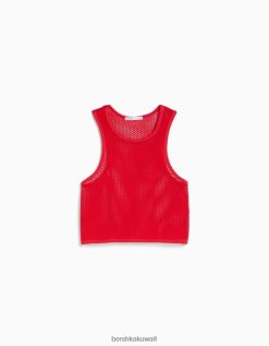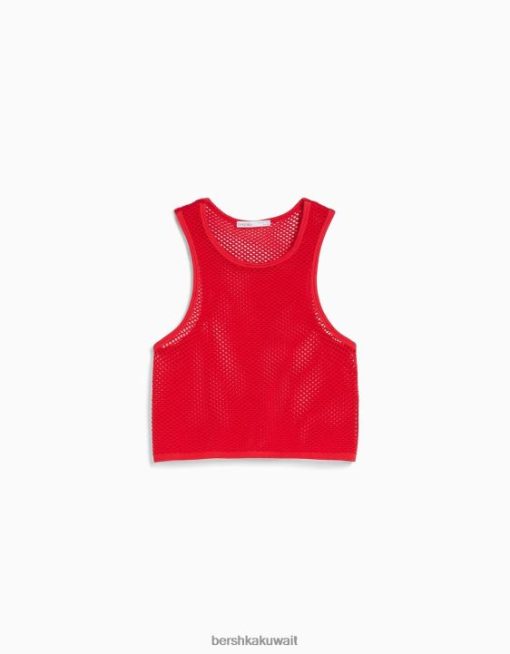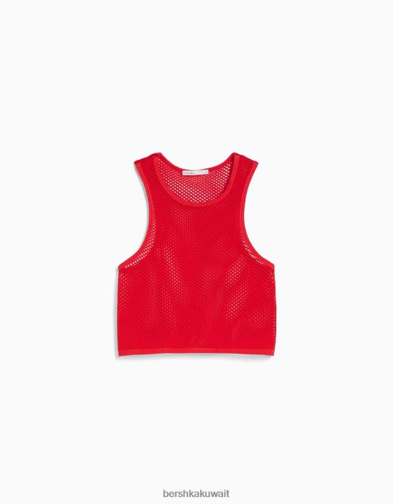 Bershka نحيف تي شيرت بدون أكمام شبكي سلس أحمر 804X356 ملابس