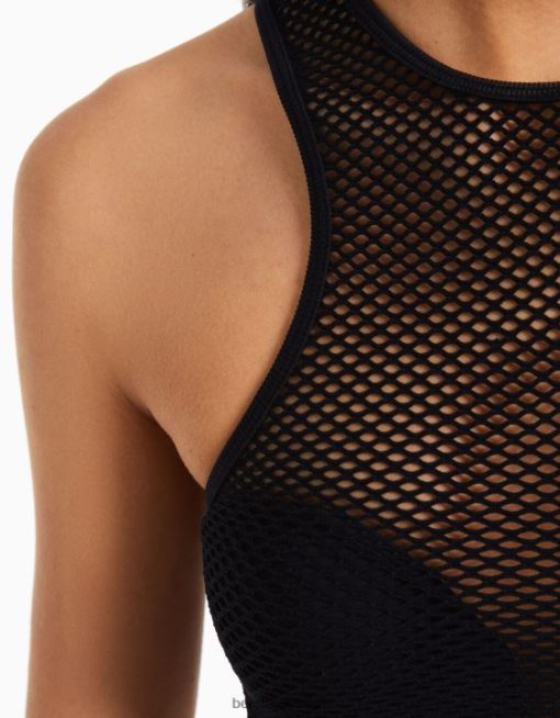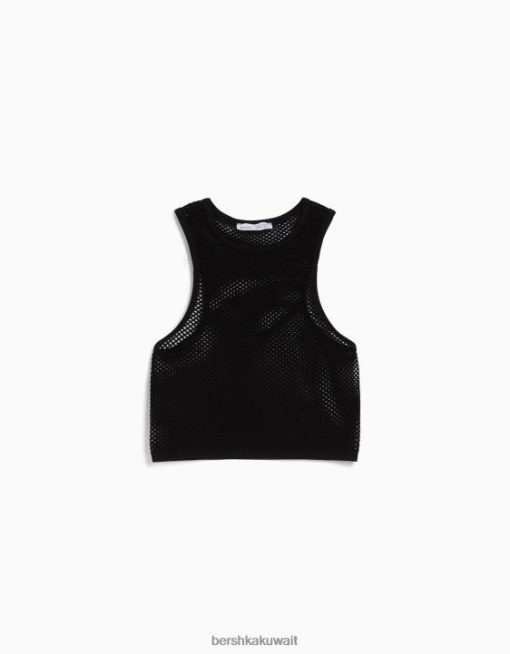 Bershka نحيف تي شيرت بدون أكمام شبكي سلس أسود 804X357 ملابس