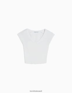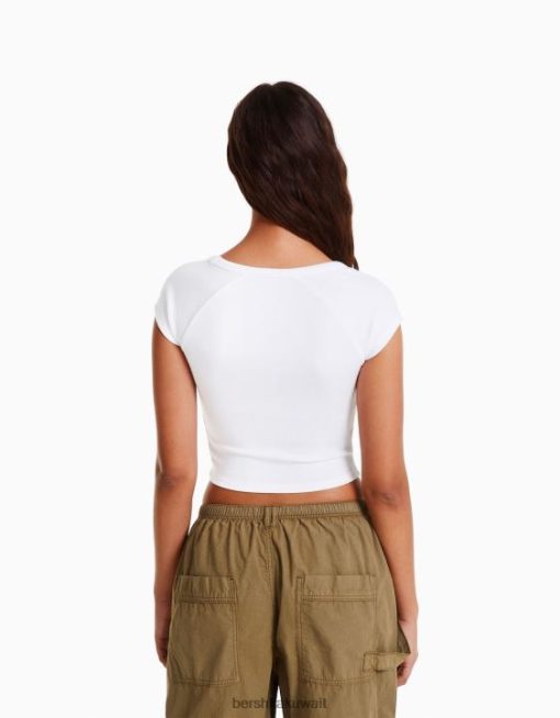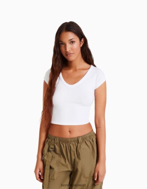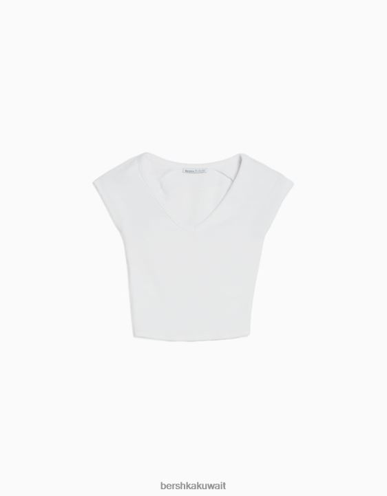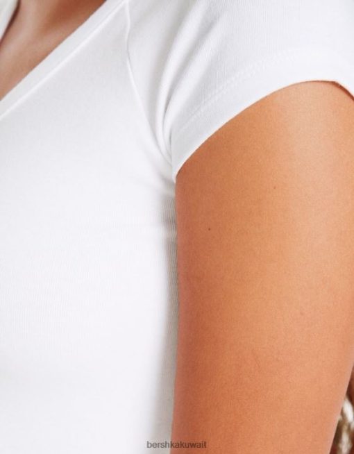 Bershka نحيف تي شيرت ضيق بأكمام ريجلان بياقة على شكل V أبيض 804X367 ملابس