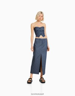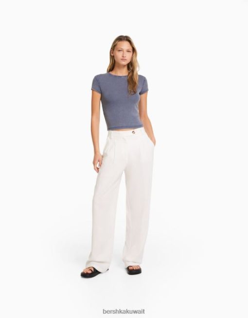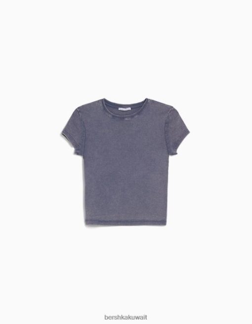 Bershka نحيف تي شيرت قصير الأكمام أزرق غامق 804X480 ملابس