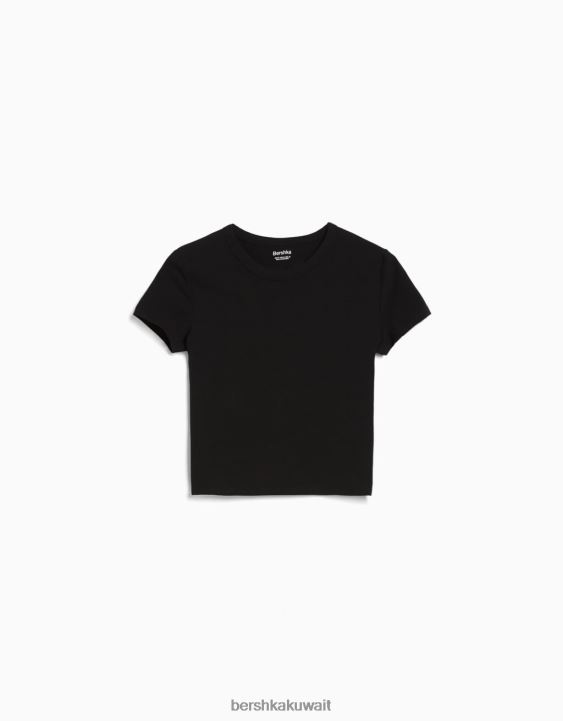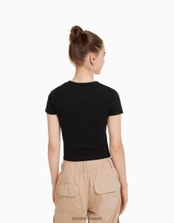 Bershka نحيف تي شيرت قصير الأكمام أسود 804X619 ملابس