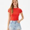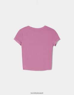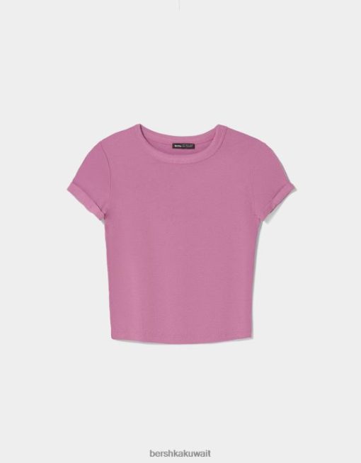 Bershka نحيف تي شيرت قصير الأكمام البنفسجي 804X521 ملابس