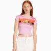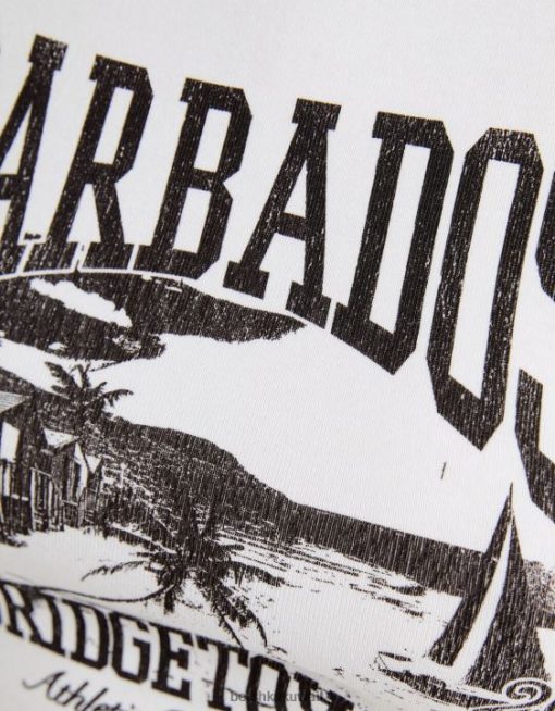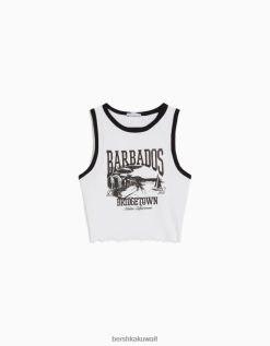 Bershka نحيف تي شيرت قصير مطبوع بلا أكمام أبيض أسود 804X293 ملابس