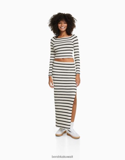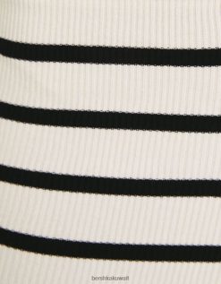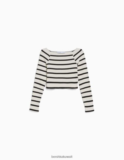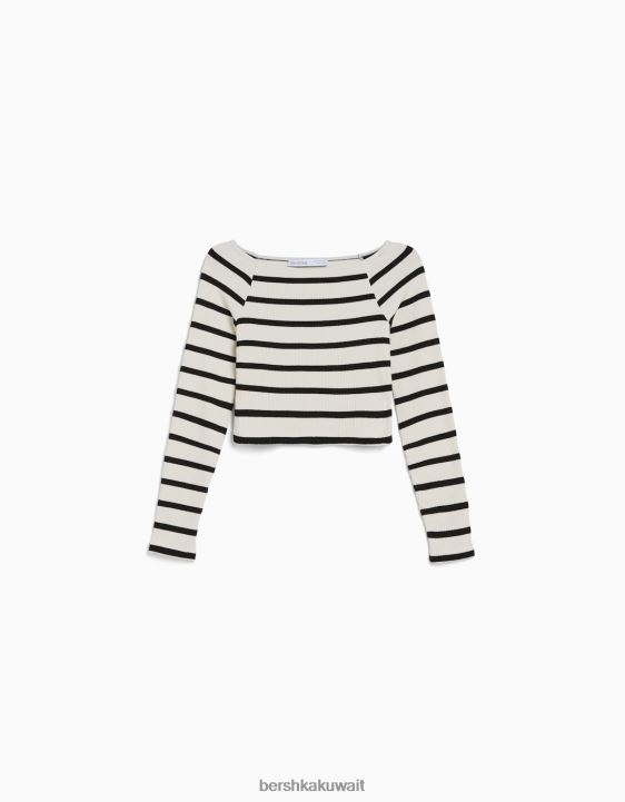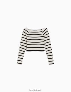 Bershka نحيف تي شيرت مخطط بأكمام طويلة ورقبة قارب أزرق 804X519 ملابس
