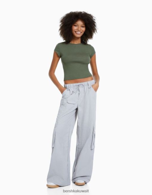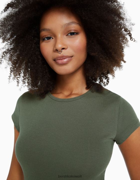 Bershka نحيف تي شيرت مضلع بأكمام قصيرة حصري 804X345 ملابس