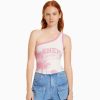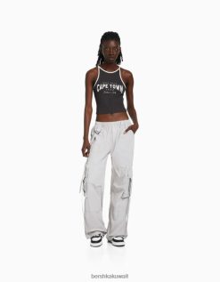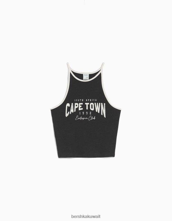 Bershka نحيف تي شيرت مضلع مطبوع بأشرطة الرمادي الداكن 804X887 ملابس
