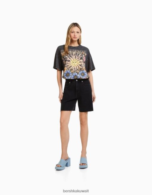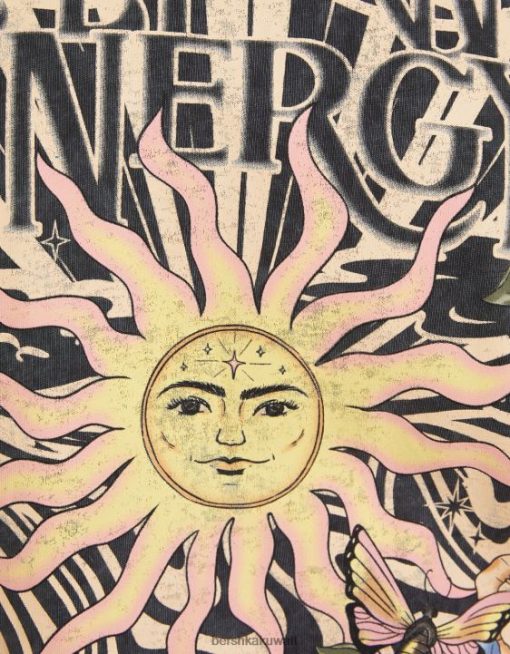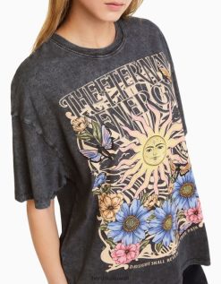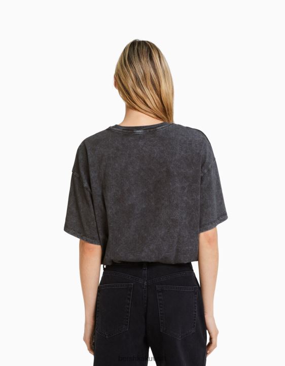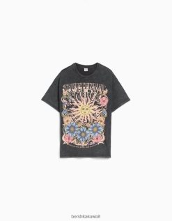 Bershka نحيف تي شيرت مطبوع بأكمام قصيرة باهت رمادي 804X465 ملابس