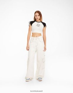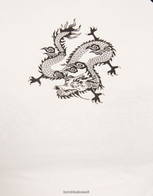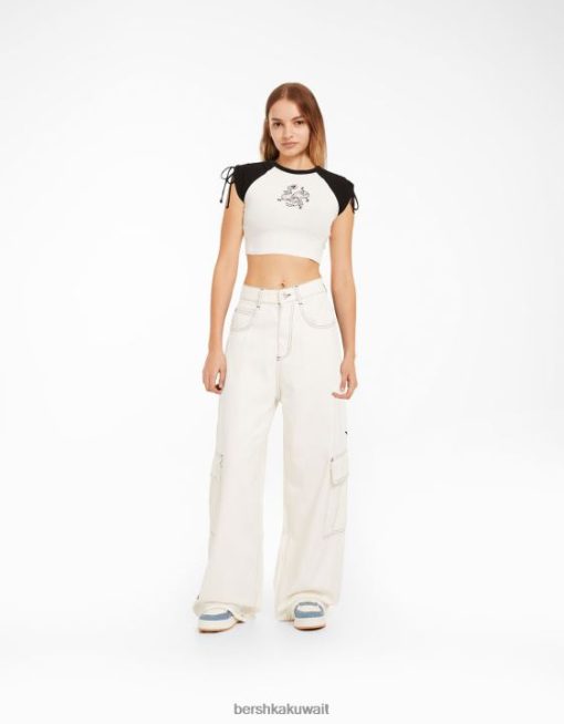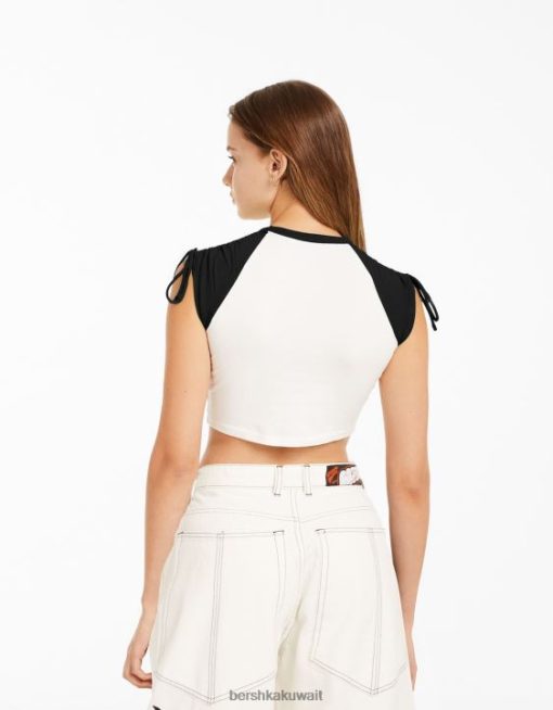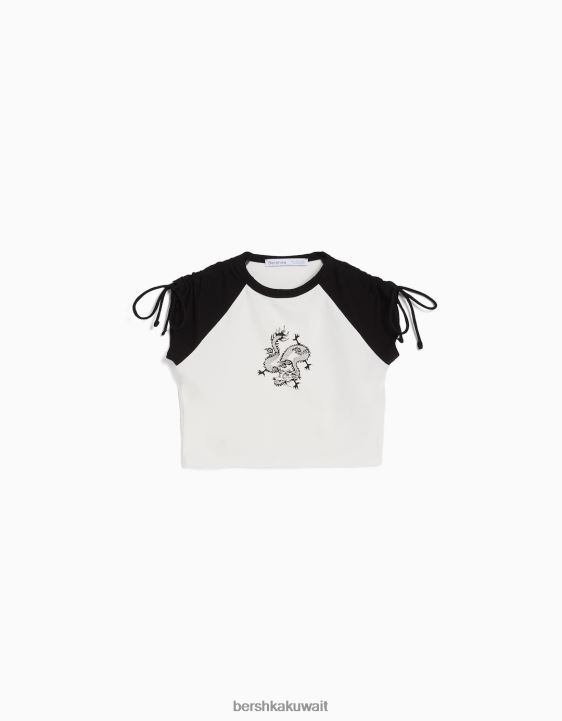 Bershka نحيف تي شيرت مطبوع بأكمام قصيرة مع تجمع أبيض أسود 804X624 ملابس