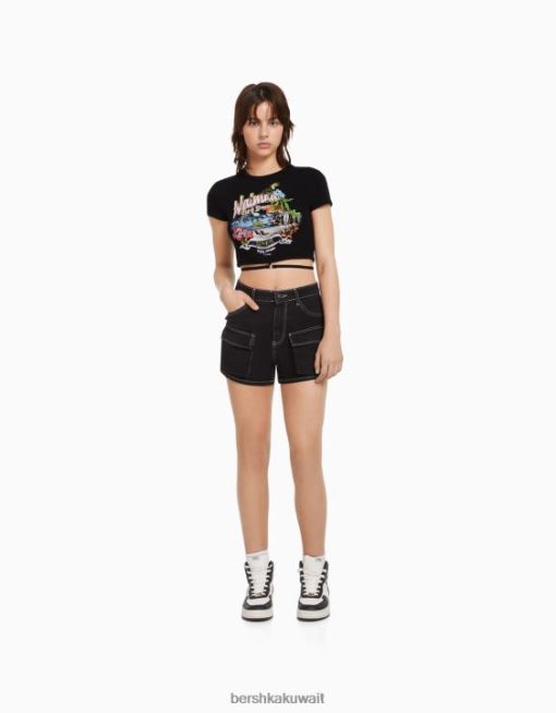 Bershka نحيف تي شيرت مطبوع بأكمام قصيرة مع حلقة وربطة عنق أسود 804X605 ملابس