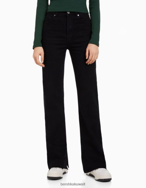 Bershka نحيف جينز مريح بفتحة تهوية جانبية أسود 804X1570 ملابس