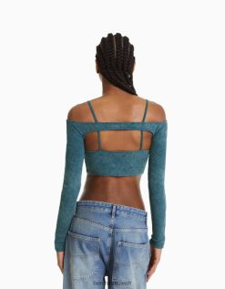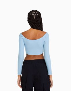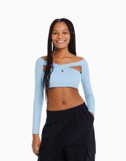Bershka نحيف جينز مستقيم مع تفاصيل حجر الراين أزرق فاتح 804X1579 ملابس