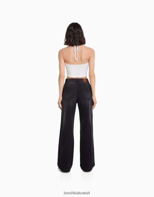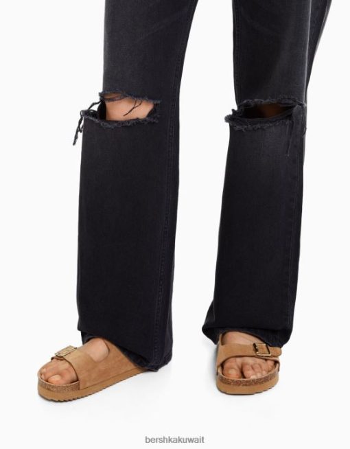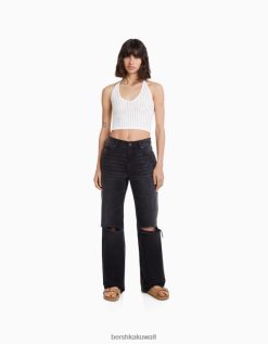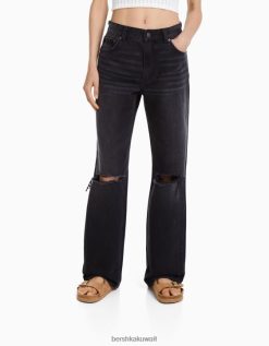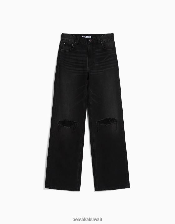 Bershka نحيف جينز ممزق عريض 90 أسود 804X1490 ملابس