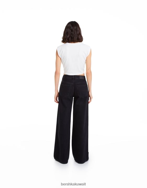 Bershka نحيف جينز واسع أسود 804X1486 ملابس